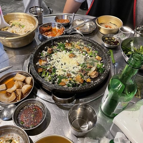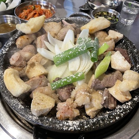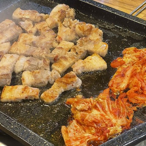 자글자글 불판에 고기 챱챱 김치 굽굽해서