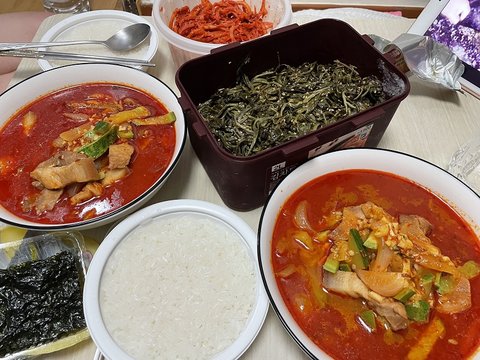 숙취에 하루종일 시달리다가 오빠가 고추장찌개 해준다고 착착착 하더니