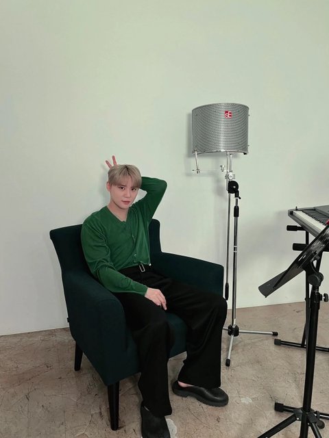음방 원색 벽지 앞에서 찍는 전신 컷