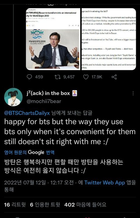 부산콘으로 50-60만명 부산 올거라는 시장 인터뷰 해외팬 댓글봐