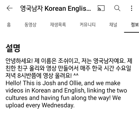 근데 지금보니까 더 킹받는게 영어로는 그냥 매주 수요일이라고만 되어있음... 영어권 구독자글은 한국 구독자들이 매주 수요일 9~10시 사이에 영상 안올라온다고 부들거리는걸 이해 못할거라는거 아냐...