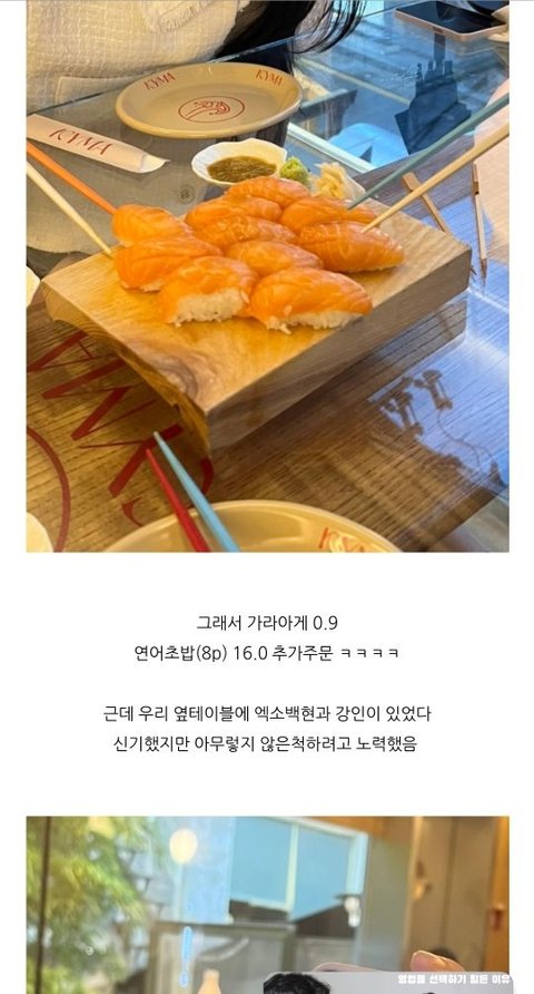 백현 강인이랑 스시집 목격담