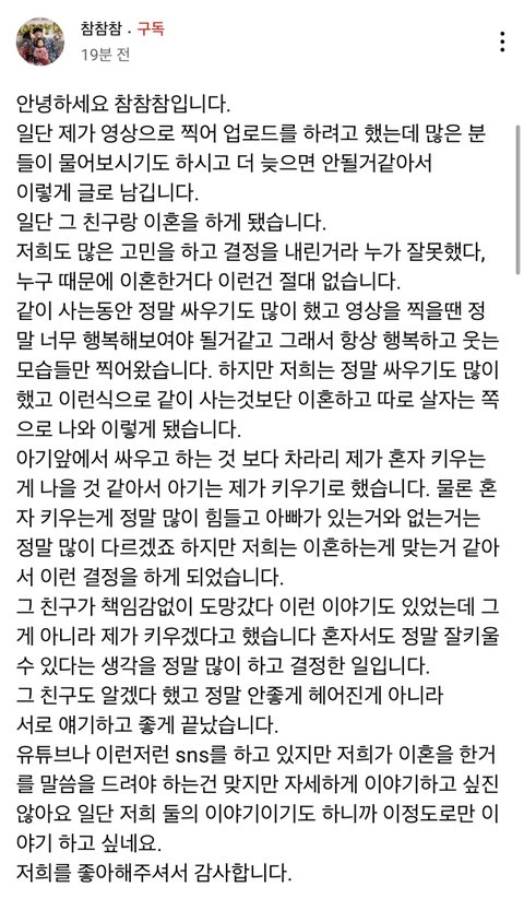 남자가 ㄹㅇ 얘 미래 다망친거나 다름없다생각함 이혼전이나 후나 ㅋㅋ 임신시켜서 여자애 자퇴╋독박육아이혼 후엔 에스크로 별 ㅈㄹ다떨어서 결국 입장문 얘가 씀 ㄹㅇ뭐냐