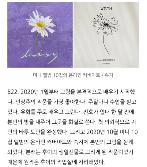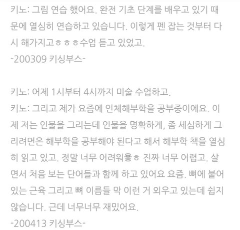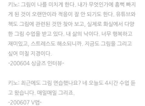 2020년에 취미로 그림을 배우기 시작했다는 키노