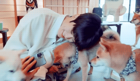 이건 강아지 애견 카페간거 강아지들이 뽀뽀 하니까 못밀어내서 당하고 있음ㅋㅋ