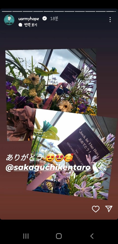 호비 인스타보니 켄타로가 호비한테 앨범나온다구 꽃선물한듯ㅎㅎㅎ둘이 계속 연락하나부네