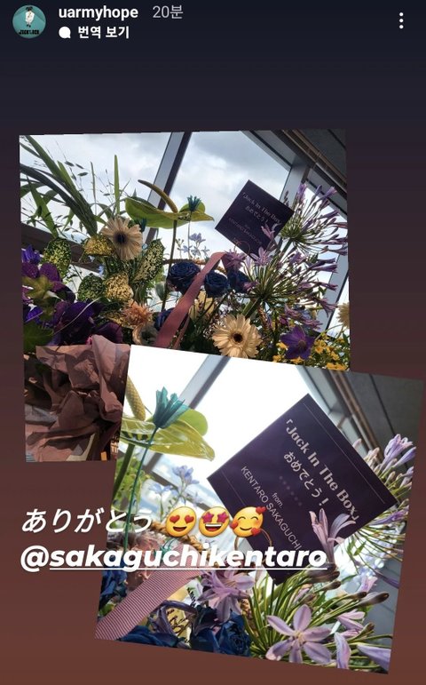 켄타로가 제이홉한테 꽃보내줬네