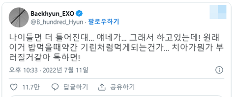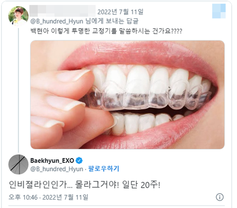 현재 치아 교정하고 있다는 백현이