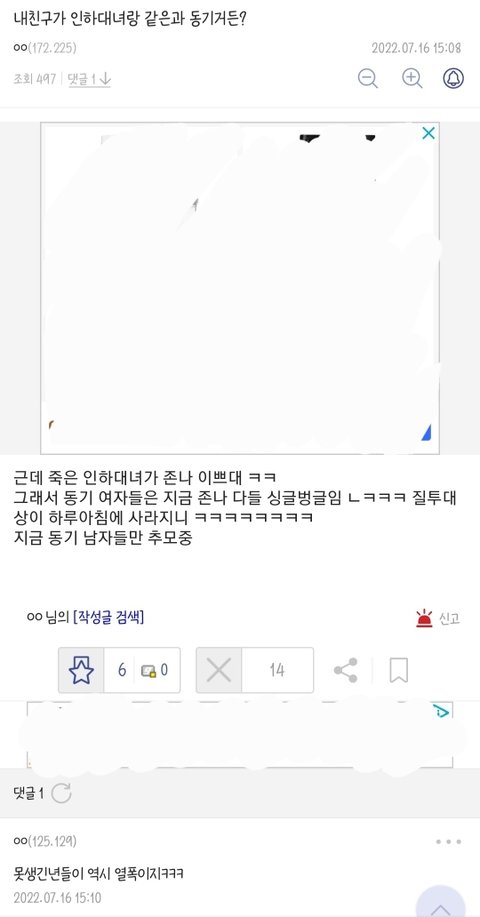 피해자를 인하대'녀'라고 부르는 것 부터가ㅋㅋ 수준 보임
