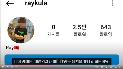 7. 전세계 500만 구독자를 가진 영국남자 공식입장 '해당 학생이(레이가)' 온라인 그루밍 (성범죄)을 당했다. 해당 사건으로 미성년자들이 트라우마와 스트레스를 받고 있다고 말함.(그들은 레이가 법적으로 성인인걸 알면서도 레이 주변에 미성년자를 말하면서 사람들이 레이가 미성년자인것처럼 충분히 오해할 수 있게 발표함)