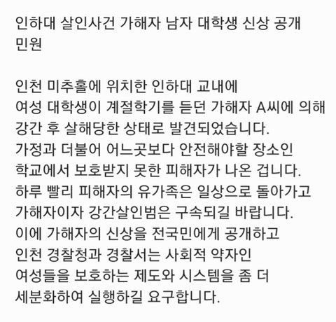 가해자 남자 대학생 신상 공개 검토 를 요청합니다 작성부탁합니다