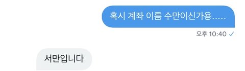 하는데 돈 입금 하려고 토스에 계좌 적었는데 이름이 XU MAN 인거야 그래서 그냥 장난식으로 수만이라고 한 줄 알고 판매자분한테 좀 드립? 같이 웃자고 이렇게 보냈는데 아니었다... 서만님 죄송핮니다....