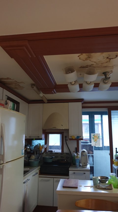 지난해 12월 부터 부엌에서 누수가 있었는데요 윗집에 연락을 했는데 회피 하면서 더 두고 보자고 하더라구요. 근데 비나 눈이 오면 어김없이 천장에 얼룩이 생겼습니다. 그래서 윗집에 연락을 했는데 자기 공간이 아니라 공사가 어렵다고 하더라구요 본인 집 발코니인데 왜 안될까? 라면 의문을 품었는데 윗집에서 차일 피일 미루더니 뭐 방수액을 사서 바르겠다고 연락이 왔습니다. 저는 업체 불러서 정확히 진단 받고 같이 의논하기를 바랬는데 우리집 문제인지 윗집 문제인지 구분 짓고 필요하면 저희도 보수할꺼 하려구요 근데 윗집에서 셀프로 공사를 했어요.