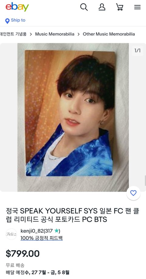 정국이 포카 420만원 돌판에서 가장 구하기 어렵고 가장 비쌈