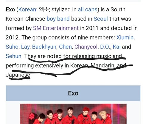 EXOs wikipedia needs to get changed? Just change the wikipedia.. where can i contact SM Entertainment. What is SM doing? at this point this country might even erase olympics even in their country because you hate my EXO.. what have they even done to you? we donot agree on this part