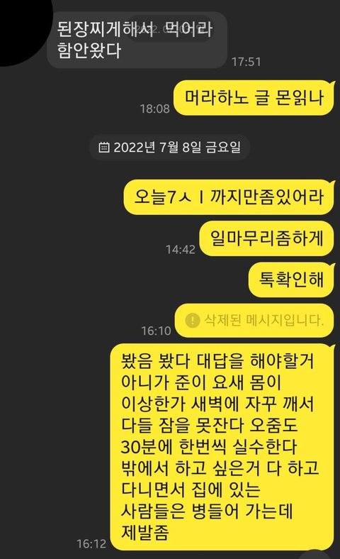 정말 저랑 몸싸움까지 나고 ,그때는 어찌나 힘이쌔던지 참. 그 뒤 아침에 들어왔다가 낮 에 나갑니다. 기가찹니다..67년생이십니다 참고로.