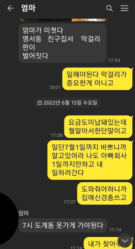 약속이 있다며 무책임한 연락한통 후 나가버립니다.