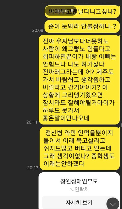 몸도 못가누는 장애인아들을 두고 말이죠