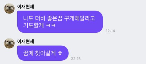 제횬이가 더비들이 걱정할까바 이제 잠 잘잔다고 말하러 온 날인데… 이때 “나도 더비 좋은 꿈 꾸게 해달라고 기도할게” 라고 했잔아… 근데 이 이후로 프메 2번 왔는데…