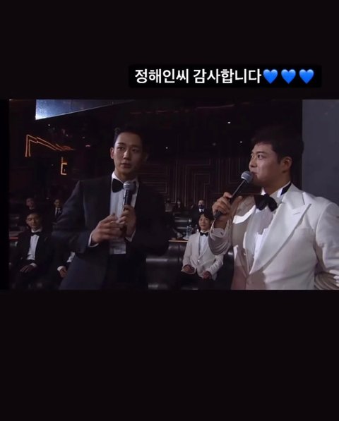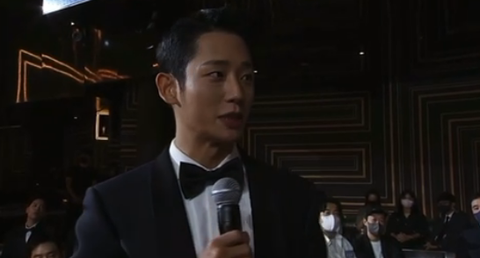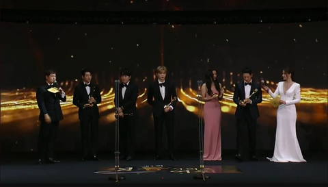 "아까 인기상을 급작스럽게 (타가지고..)당황했어요. 저는 전혀 몰랐거든요. 그래서 티르티르 너무 죄송해가지고 바로 검색을 해봤습니다. 티르티르 대표님 죄송하고요. 많이 사랑해 주십시오. 너무 마음이 불편해가지고..."