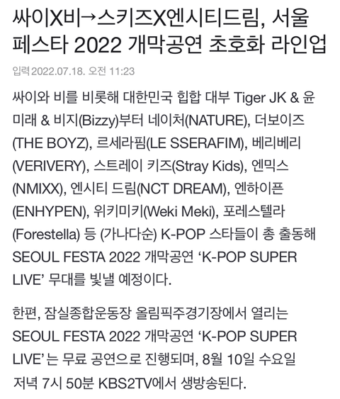 SEOUL FESTA 2022 개막공연 ‘K-POP SUPER LIVE’
