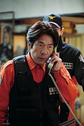 7. 높은 직위의 사람들이 참석한 커팅식에서 오직 구조대장(오달수)만이