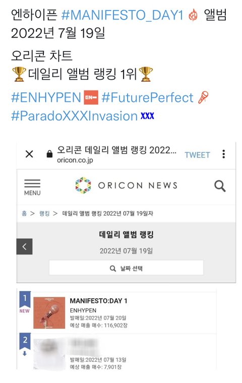 우왕 오리콘 앨범 차트 1위