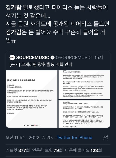 르세라핌 피어리스 김가람 가람 학폭 탈퇴 김채원 사쿠라 허윤진 카즈하 홍은채