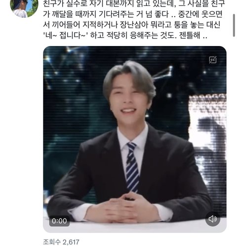 차분하고 능청스러우면서도 상대방이 무안하지않은 대처.... 이건 진짜 타고난 성격인거같음..