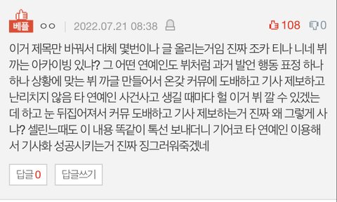 근데 진심 뷔 억까 앞뒤 맥락까지 찾아보고 평소 말하고 행동하는 뉘앙스를 알면 진지하게 받아들이고 일키울 일들이 아니어서 답답함.. 특히 비언어적 단서들이 빠진 텍스트만으로 함부로 판단하는건 오바임 이건 뷔 말고도 모든 연예인에게 해당되지만
