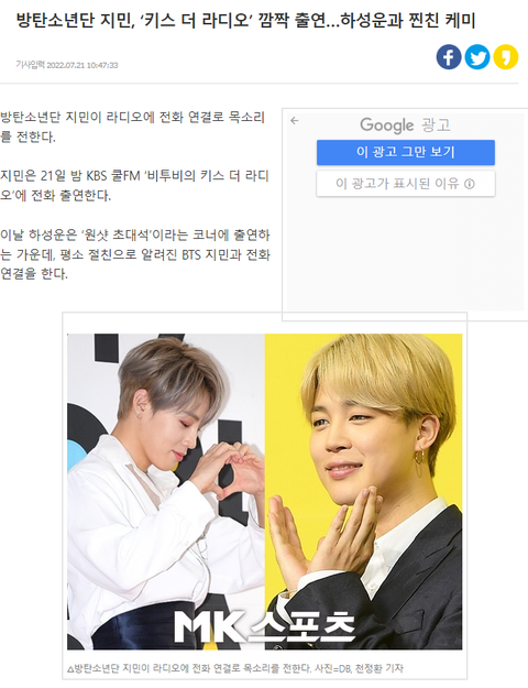 지민 오늘 키스더라디오 전화연결한대!!!!!