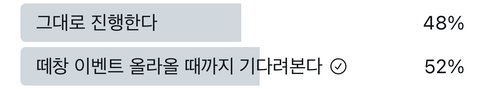 + 기다려보자는 쪽 투표가 많으면 계정삭제할거라네 투표 ㄲㄲ