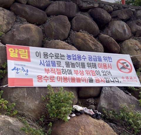 농업용수 공급을 위한 곳이라서 시멘트 마감도 제대로 안되어있는데 지들이 들어가서 다쳐놓고 도청에 민원건다고함 ㅋㅋ 그런 인간들이 많다고 함 미친인간들