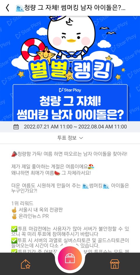 스타플레이 어플에 투표 올라왔는데 20표밖에 못받았길래 다들 투표 좀 해줘