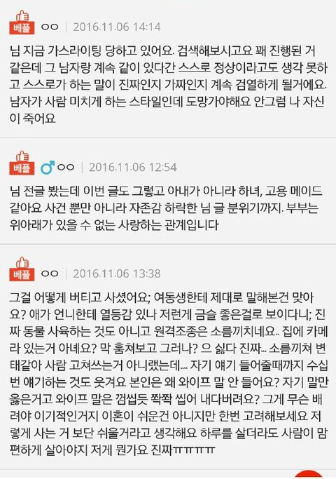 근데 남편한테 가스라이팅이라는게 있다는데 제얘기 같아요 어떻게 생각해요 이럴수도 없고..... 해서..... 고민하다가 그냥 제 글 링크를 동생에게 보냈어요.