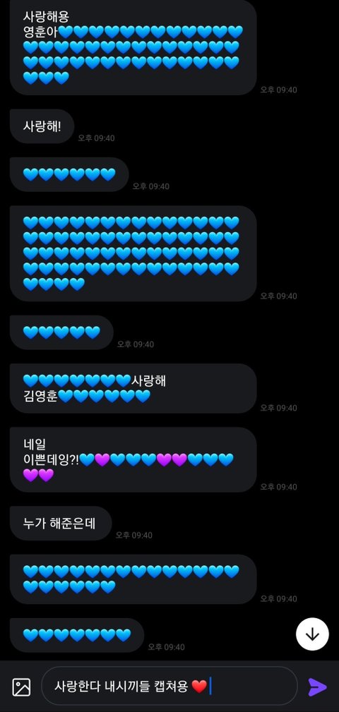 빵훈이가 파랑색 좋다고 하니까 파랑 하트 많이 씀 ㅠㅠㅋㅋㅋㅋㅋㅋㅋㅋㅋㅋㅋㅌㅌㅌㅌ