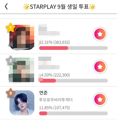 스타플레이라는 어플에서 지금 9월 생일 아이돌들 투표 중인데 여기서 1위하면