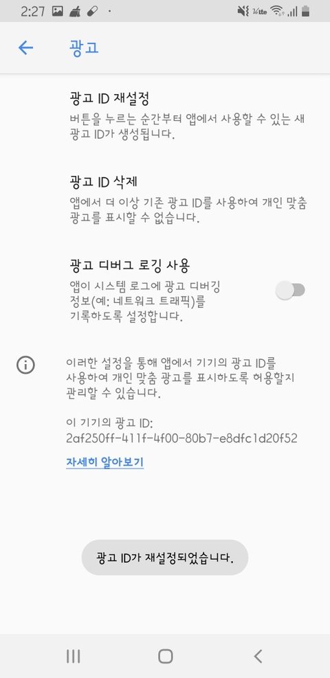 3. 광고 ID 재설정을 누른다