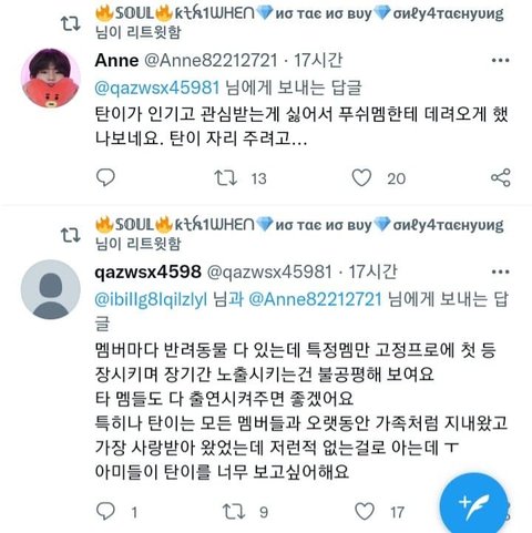 와 소름돋아 뷔 악개들 저렇게 상주하면서 지민 까다가 지얘기 나오면 바로 기어나와서 발작한다니까 ㅋㅋㅋㅋㅋ
