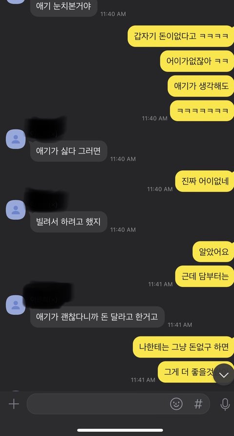 내가 너무 어이가없어서 그러면 "내 돈으르 할까?"라는 말을 왜한거야? 라고 하니 내 눈치봐서 내가 화났다 싶으면 친구한테 빌리려고 한말이였다고 함.