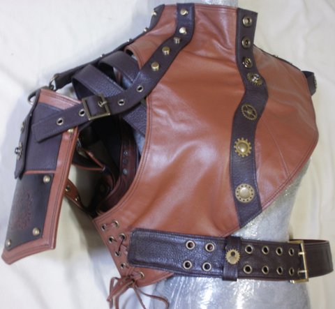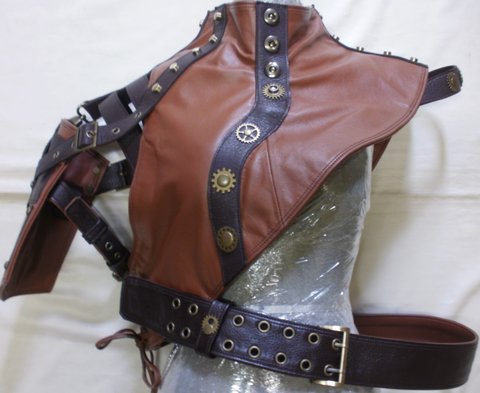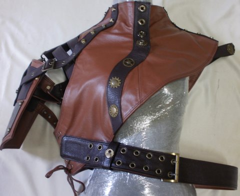 브라운 톤의 천연 나파 가죽과 엔틱 금속 장식 등으로 장식하여 제작한 스팀펑크 디자인 재킷입니다.(마디샤