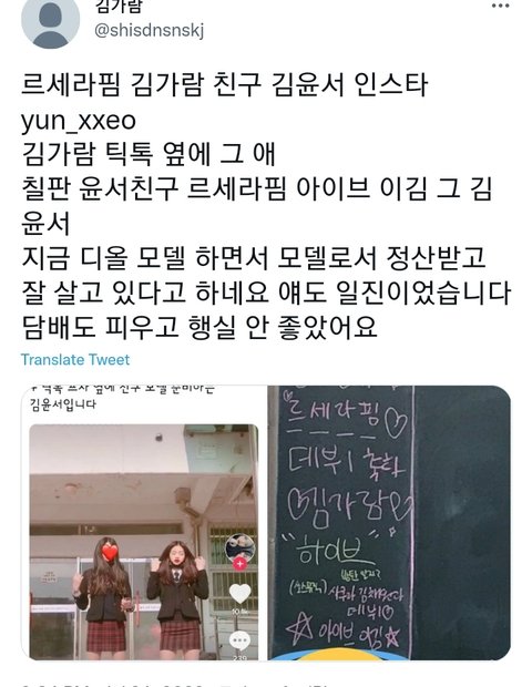 아이브 이김 쓴 애가 윤서 친구라고 쓰는데