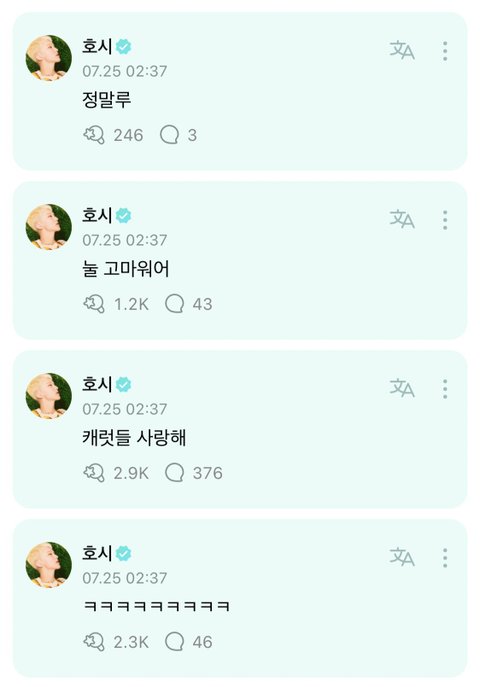 이거 올리고 호시 위버스에서 호랑해 안하고 사랑해 하고 오타내는거 보니까 술마신것 같음 근데 좋다