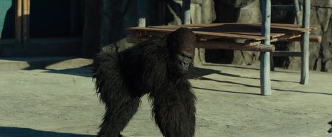 고릴라 (사실은 직원) 빡쳐서 통 집어 던지려고 함