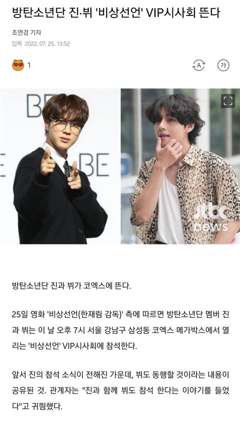 뷔는 오보였으 석지니만 갔음