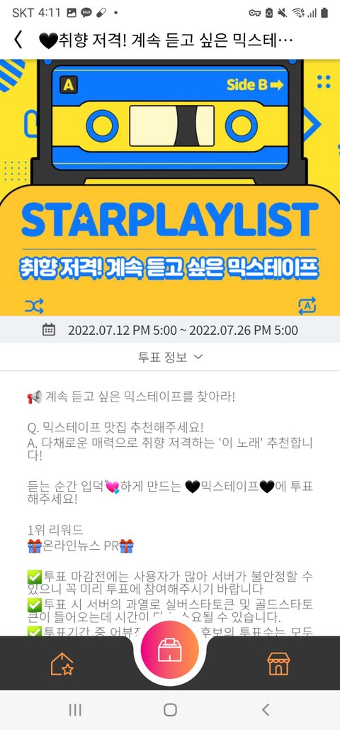스타플렝이 어플에서 퉆 가능하니까 다들 들어가서 확인이랑 투표햐쥬