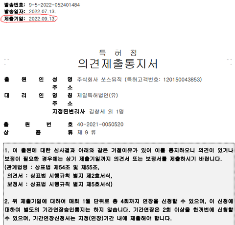 이제 본론으로 들어갑니다.이번에 쏘스뮤직이 받은 의견제출통지서 입니다. 제출기일이 9월 13일로 되어있습니다.