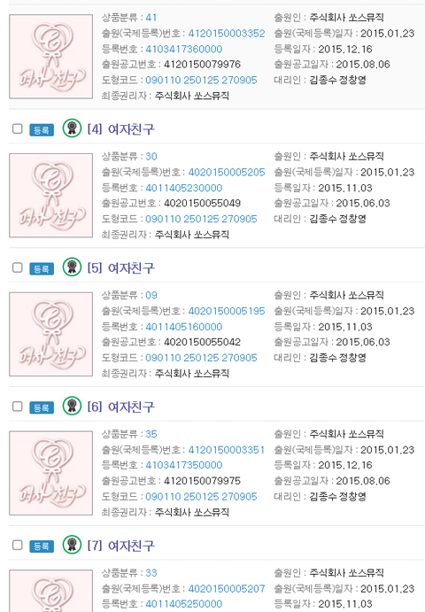 2. 여자친구 한글 상표권은 여전히 쏘스뮤직이 그대로 가지고 있는 상태입니다.