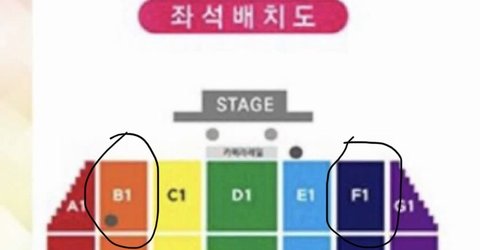 여기 자리중에서 양도 받을까 생각중인데 잘보일까? 가본 사람 어느쪽 어느열이 젤 좋아?저기 표시된곳