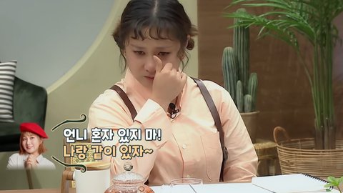 박나래가 혼자있는 미자에게 같이 있자고 말시켜주고